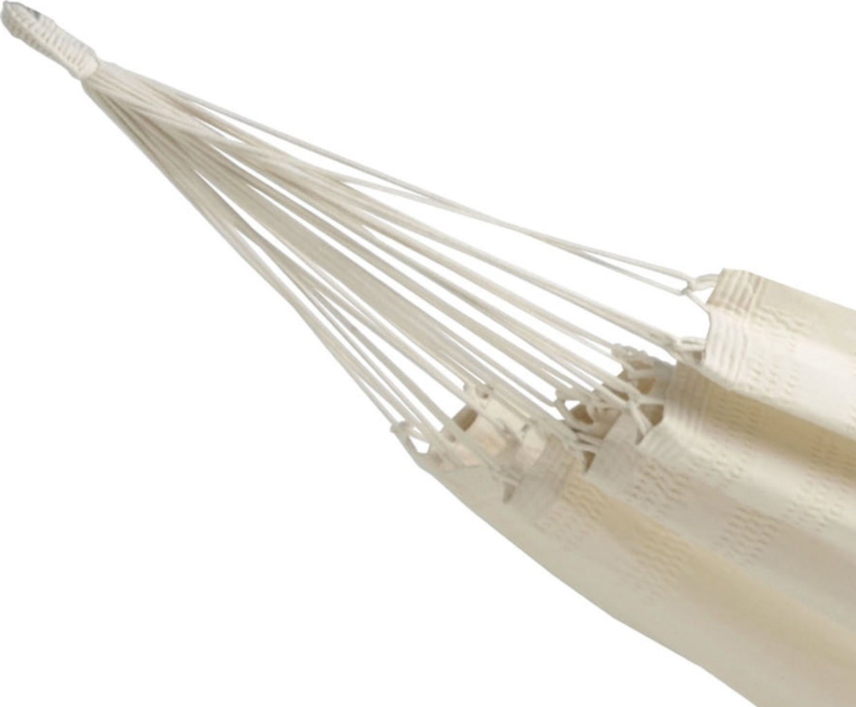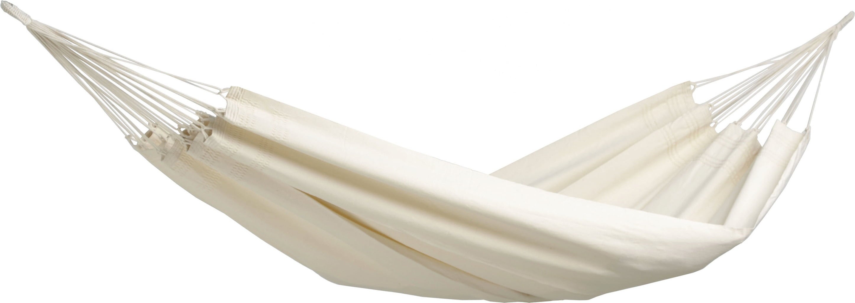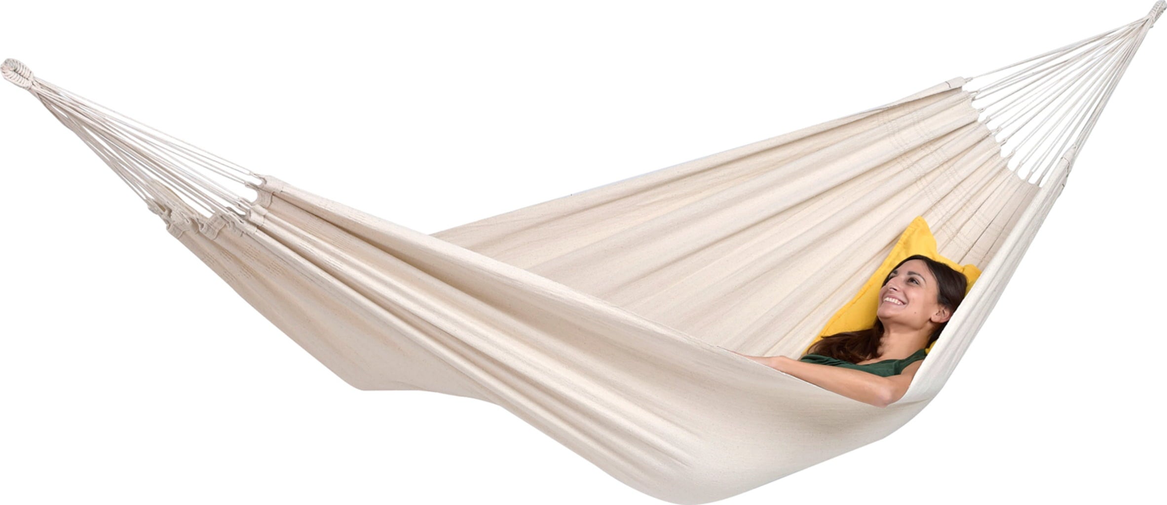 The dense 400 g/m² fabric can hold up to 200 kg in weight, making th hammock also suitable for a couple. The hand-woven and double 5-stitched eyelets form a robust base for the numerous suspension cords and guarantee exceptional stability. This is the perfect place to lie down, relax and enjoy the Brazilian way to unwind!