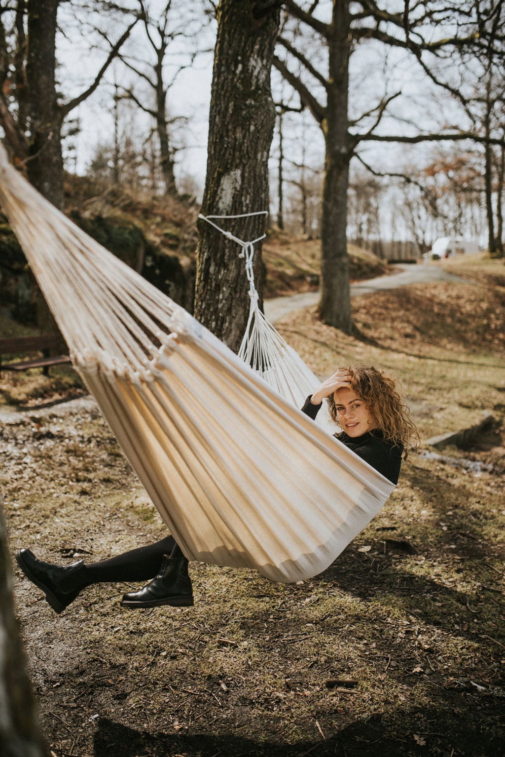 Hardware for hanging up the hammock or a frame are not included in the delivery and must be purchased separately. You can find them under the Accessories section further down on this page.