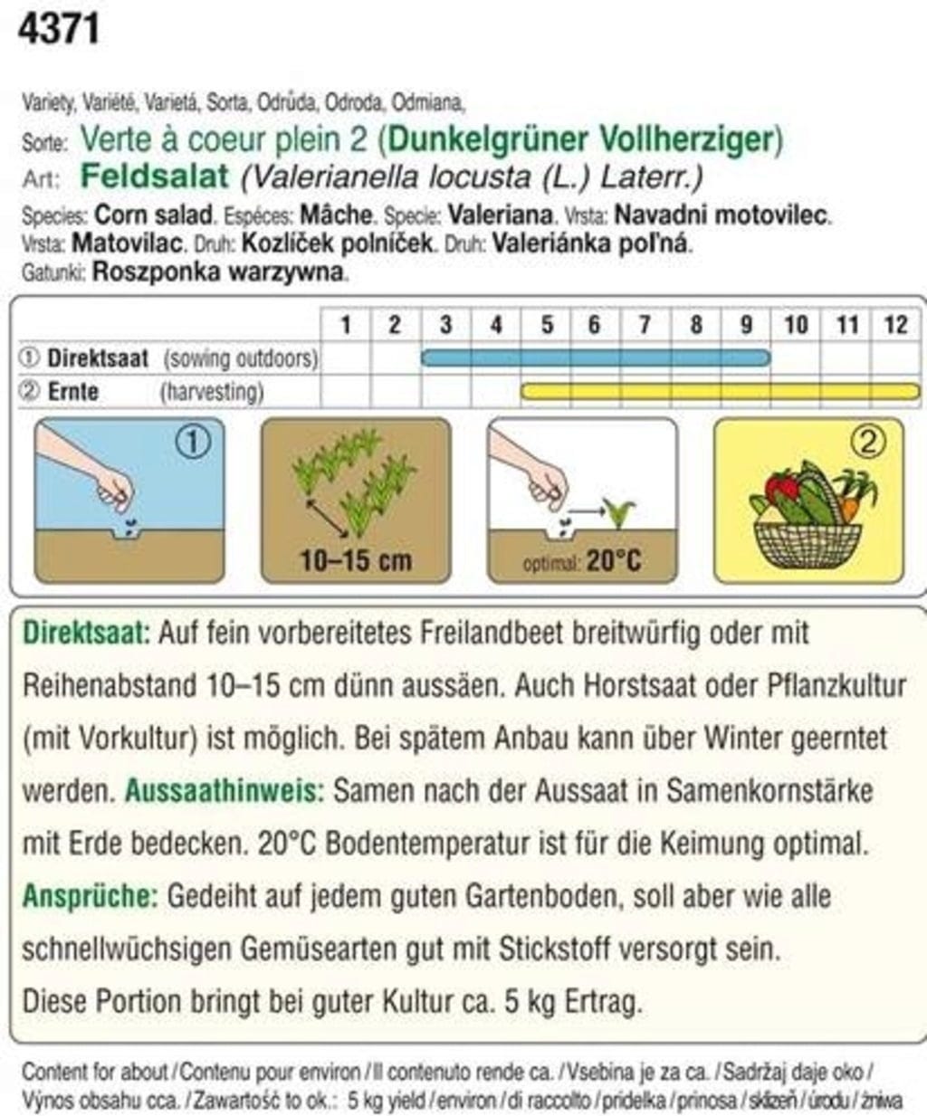The lamb's lettuce "Verte à coeur plein 2" has a wonderfully nutty flavour and is a very special delicacy that can also be enjoyed in winter. Since the lettuce is very robust and high-yielding, it can also be grown all year round. The optimal soil germination temperature is 20-25 °C.