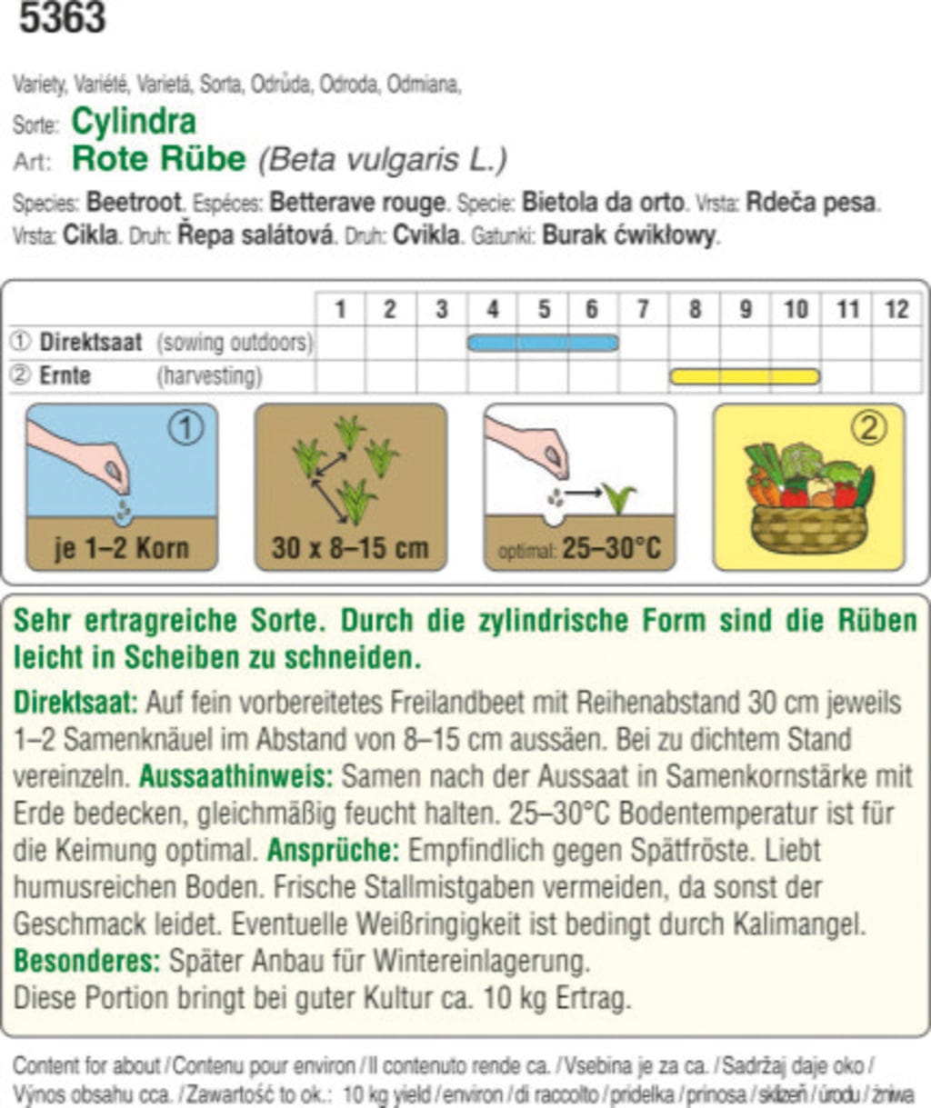 This very high-yielding variety produces cylindrical beets that are particularly easy to process and are excellent for juices as well as cooked as a side dish or in salads.