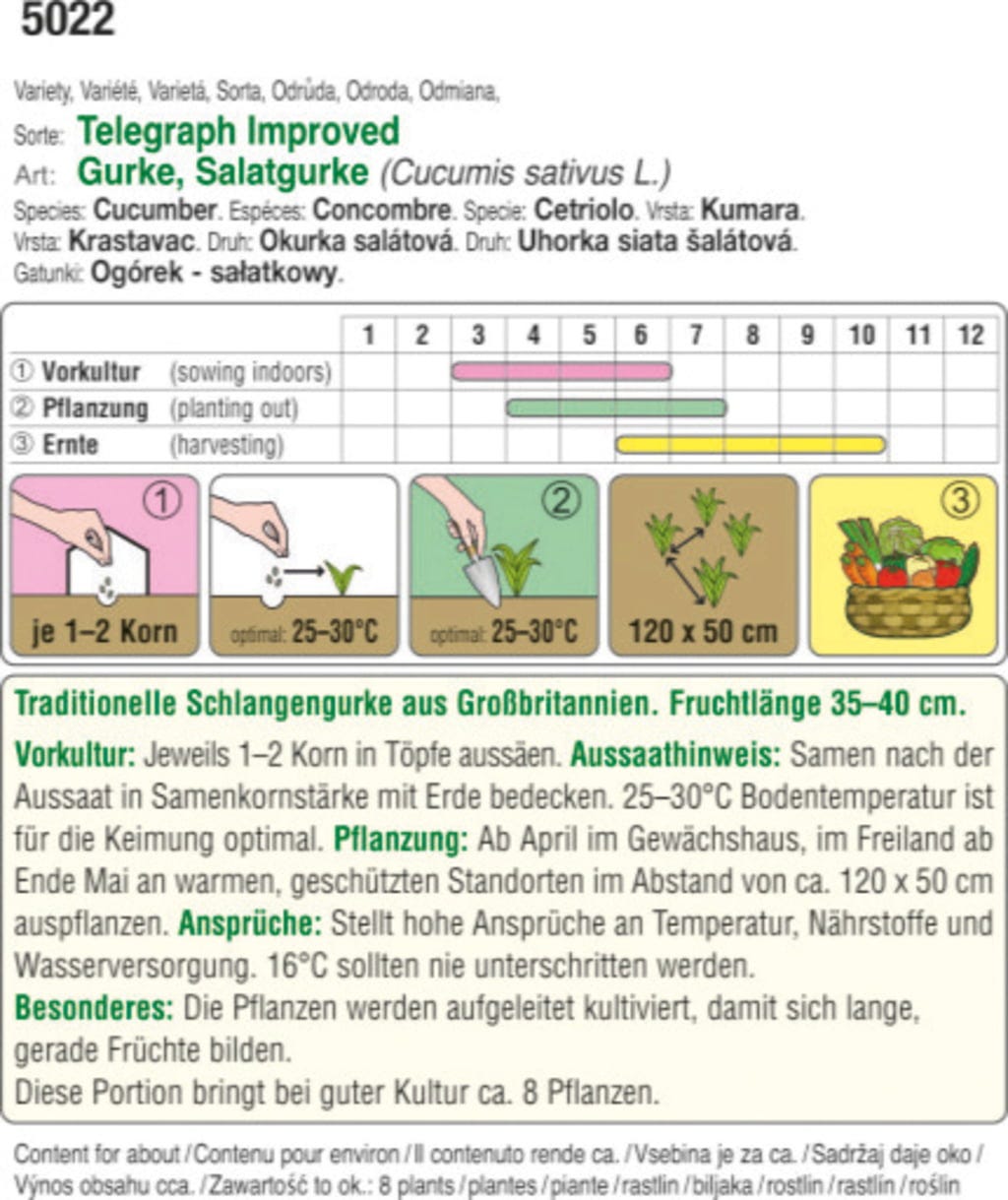 The fruits of this traditional slicing cucumber from Great Britain grow to approximately 35-40 cm long and taste excellent in salads and other cucumber dishes.