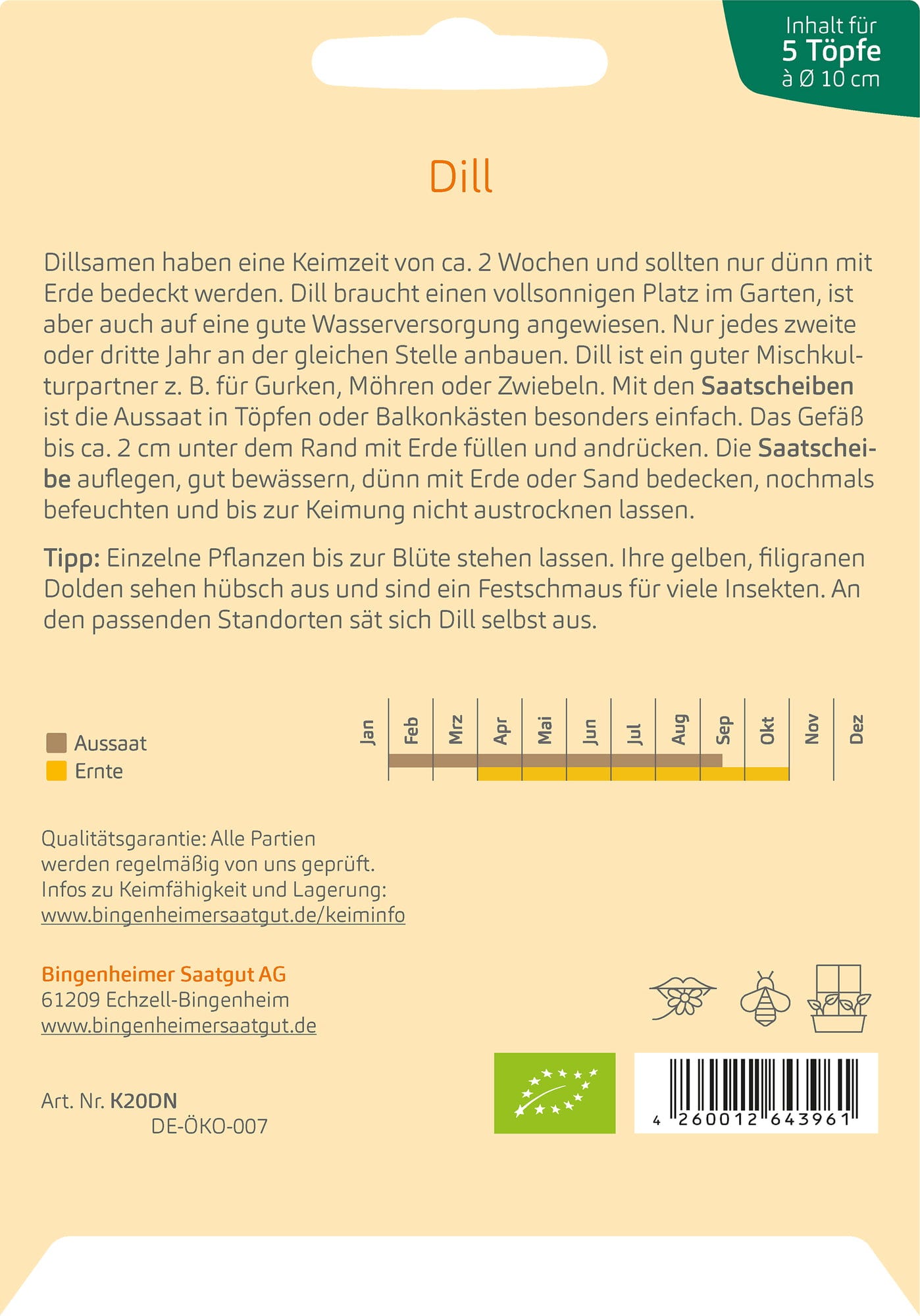 Bingenheimer Saatgut Dill, 5 Seed Discs