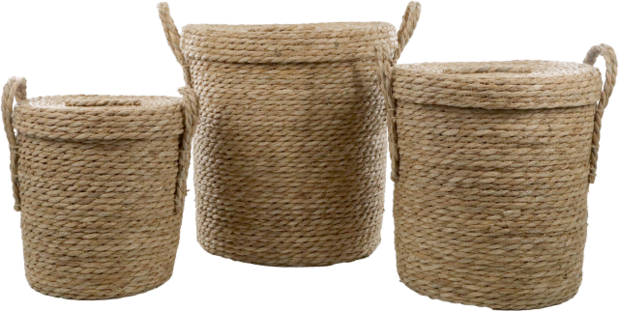 Natural, stylish and versatile: This basket set made from dried grass adds both order and charm to your home. With three different sizes, they are ideal for storing anything from small items to larger ones - and the matching lids keep everything neatly concealed. Perfect for the living room, bedroom, or bathroom.