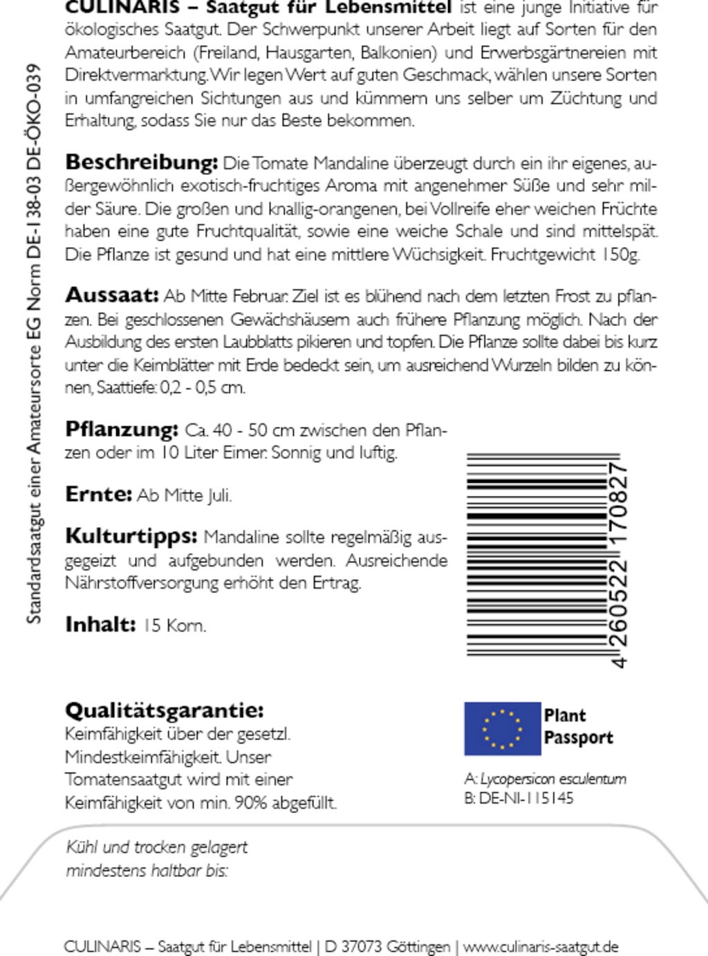 | Manufacturer: | Culinaris - Saatgut für Lebensmittel, Thiegasse 5, 37124, Rosdorf, Germany, info@culinaris-saatgut.de, culinaris-saatgut.de |