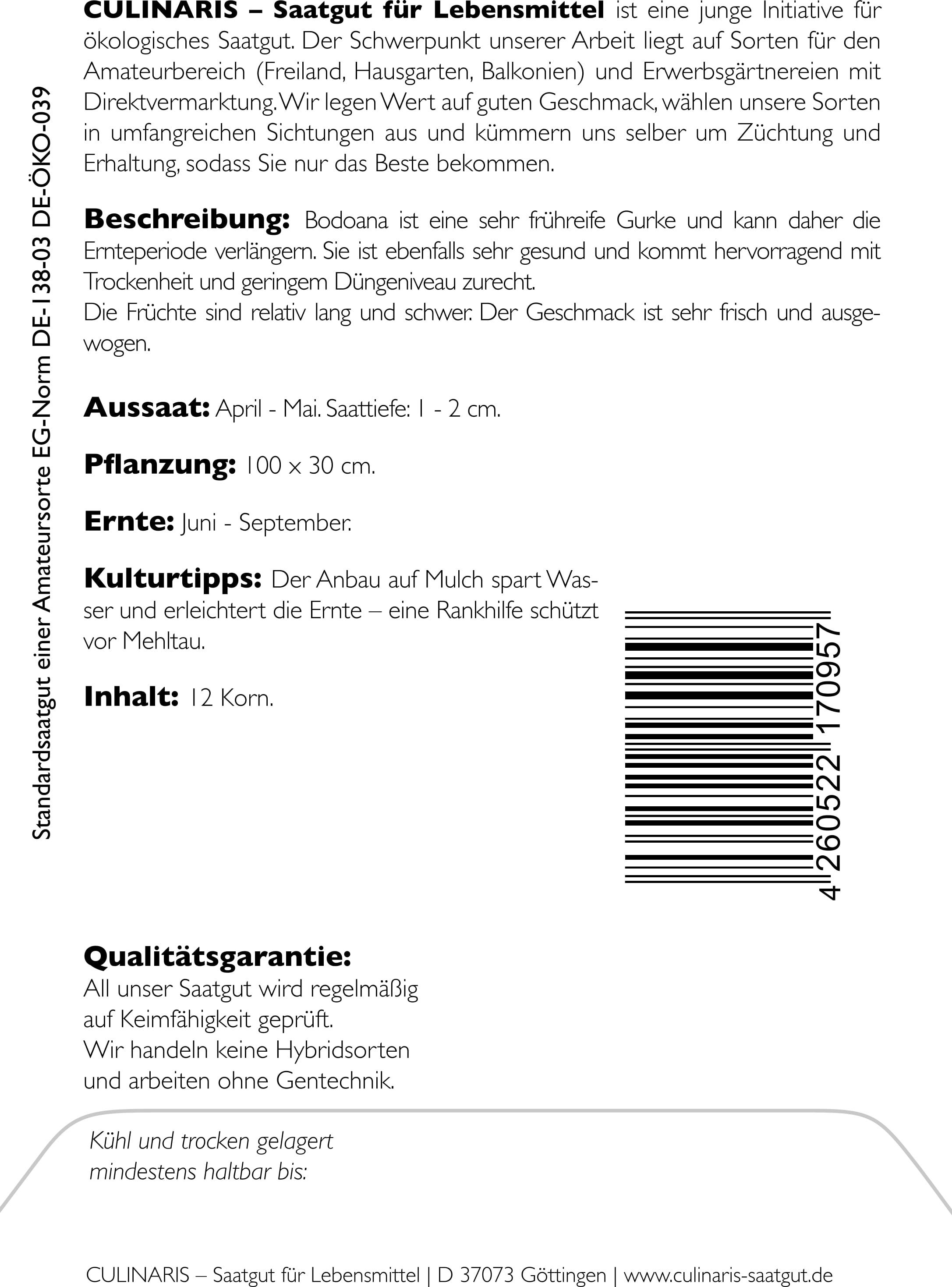 | Manufacturer: | Culinaris - Saatgut für Lebensmittel, Thiegasse 5, 37124, Rosdorf, Germany, info@culinaris-saatgut.de, culinaris-saatgut.de |