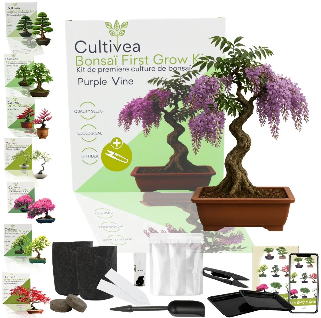 With the First Bonsai Purple Vine Kit, you can grow your own bonsai at home - easily, and step by step even without any prior experience. The Purple Vine features delicate, deep purple foliage and an elegant appearance. A small tree that brings creativity, tranquillity, and a deep connection to nature into your home.