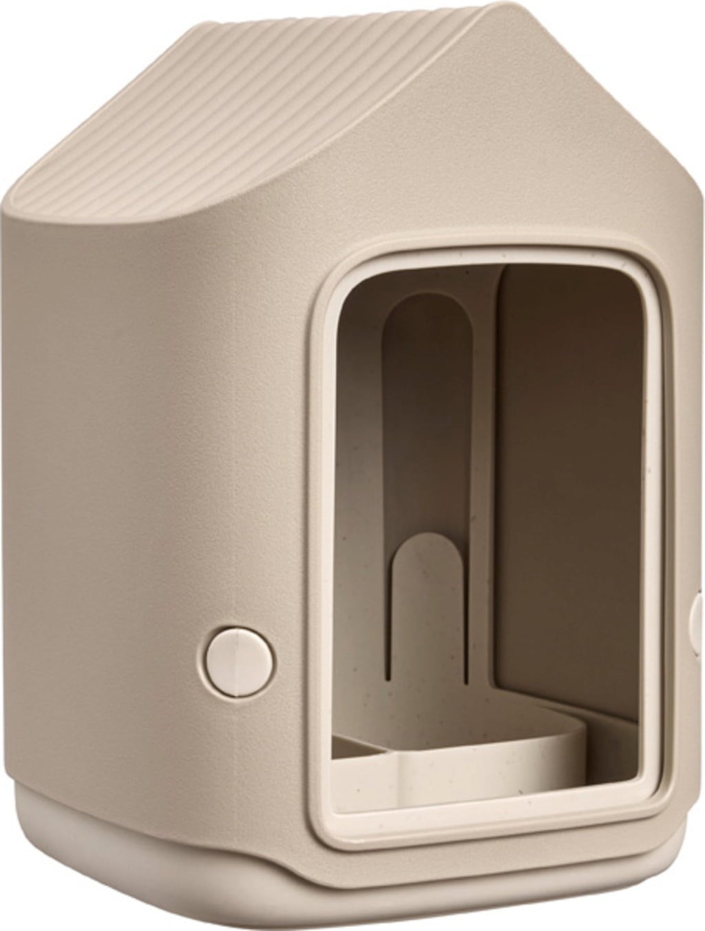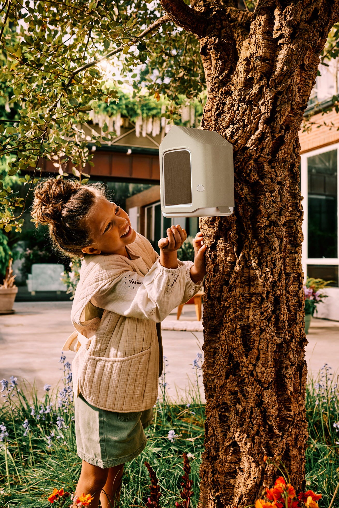 This stylish bird feeder, made from recycled plastic and developed in collaboration with experts, blends harmoniously into the garden, patio and balcony with its natural colours. It features a sheltered feeding area with a bird bath, offering a safe and inviting spot for wild birds to eat, drink and feel at home.