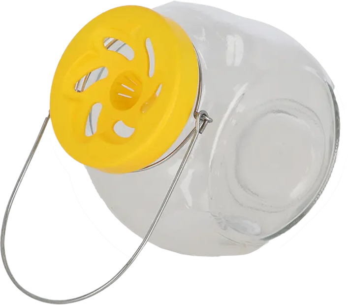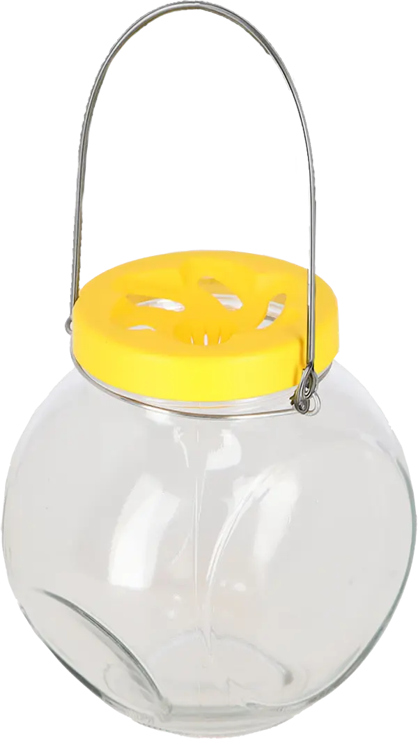 This clever hornet trap acts like a magnet for Asian hornets, so you can enjoy undisturbed hours on your balcony, patio, or garden. Simply fill the jar with a sweet liquid and hang it up or place it in a suitable location. The yellow-coloured lid also attracts hornets, luring them into the trap, while other insects, such as honeybees and butterflies, cannot fit through the extra-small openings.