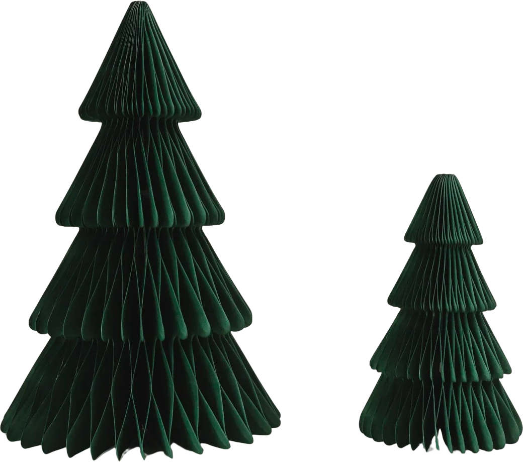 The paper fir trees in a set of 2 bring an elegant, natural touch to Christmas decorations. Made from high-quality paper with a fine honeycomb look, they add stylish accents to sideboards, Advent decorations or festive table settings.