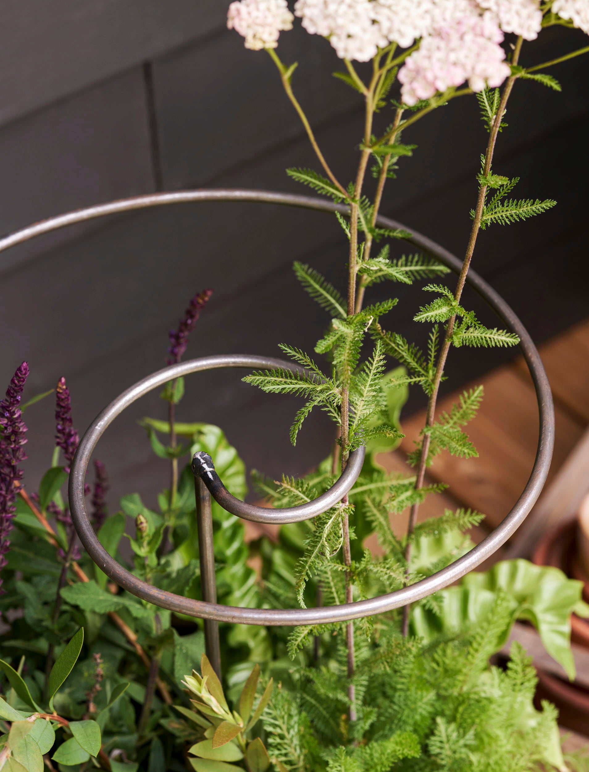 These plant supports give your perennial plants the necessary stability they need for strong, vigorous growth. The spiral at the top is not only an attractive design feature, but also allows you to rotate the support onto your plant as it grows. Over time, the unfinished metal surface will weather and develop an attractive rust patina, which will further enhance its rustic charm.