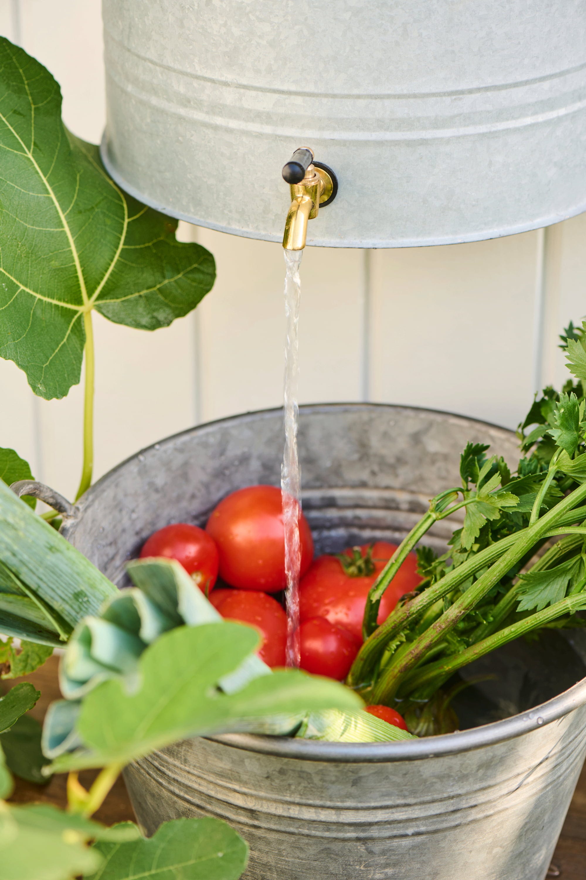 This water container with integrated soap holder is a practical essential for avid gardeners and a smart addition to any outdoor kitchen. It makes washing your hands outside simple and convenient whenever you need it.