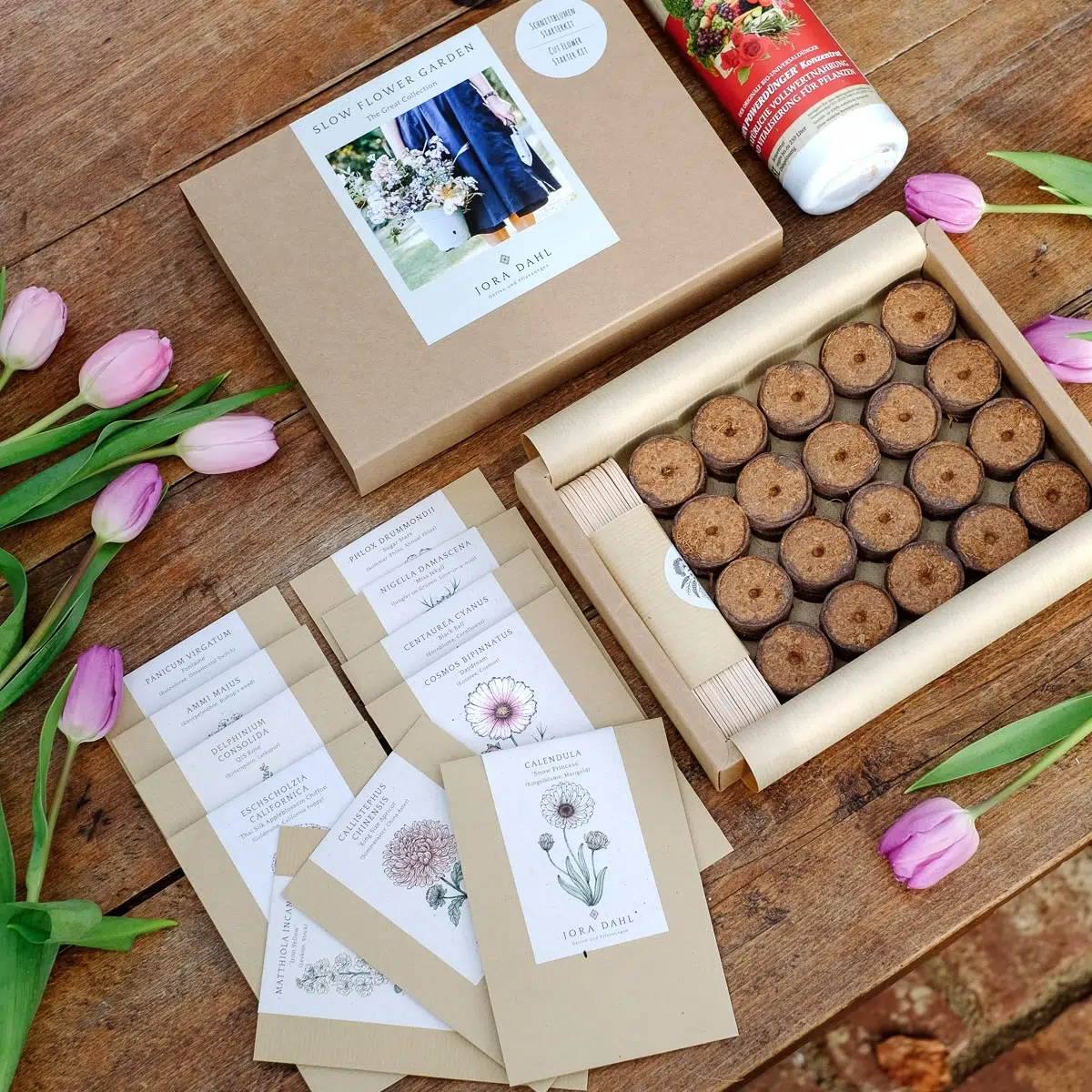 Jora Dahl "Slow Flower Garden" Cut Flower Seed Set with Fertiliser