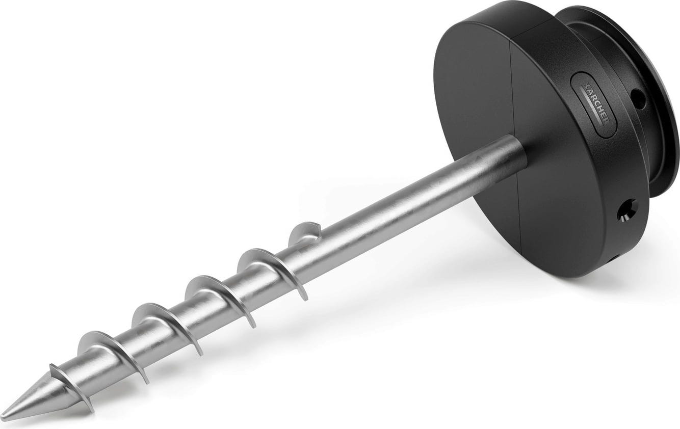 The ground spike for hose reels allows for flexible positioning of your hose box anywhere in the garden istead of a permanent wall-mounted installation. The robust metal spike can be twisted into the soil and keeps your hose reel box securely in place during use. An integrated spirit level helps to ensure the ground spike is mounted perfectly upright, even on uneven terrain.