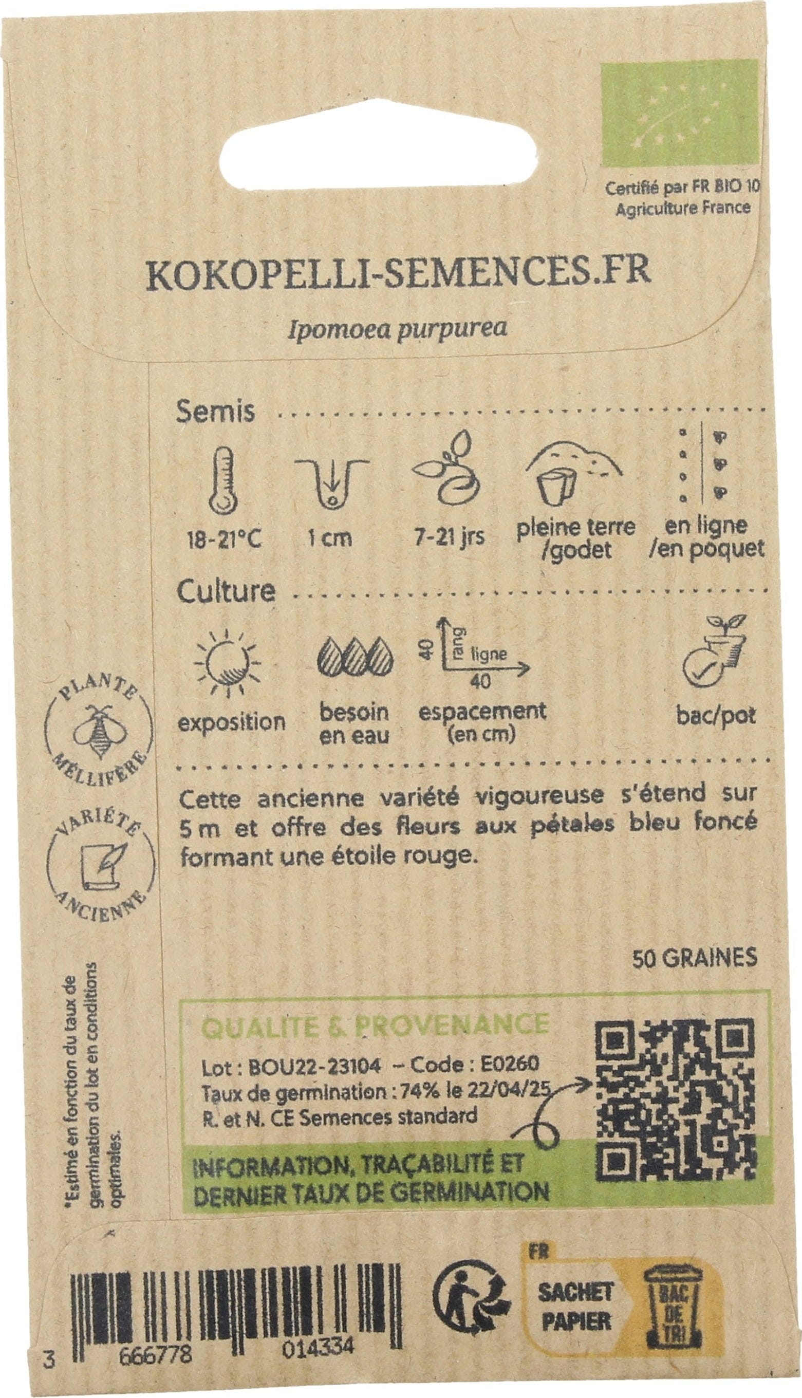 Kokopelli Organic Morning Glory "Grandpa Ott", 50 Seeds
