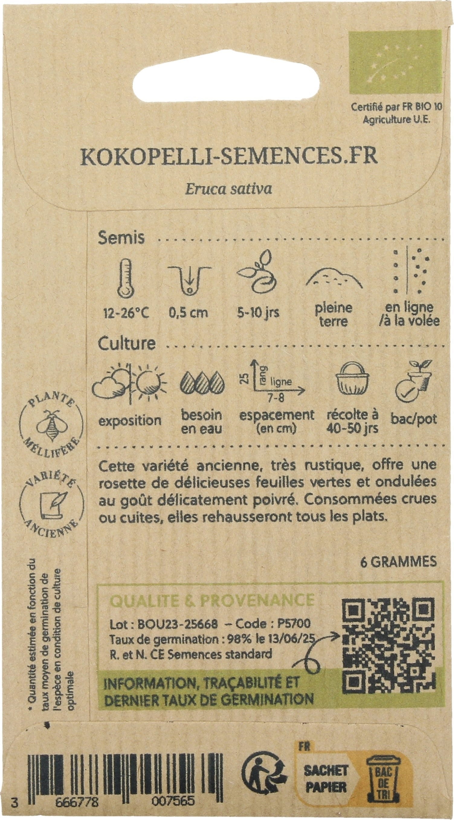 | Manufacturer: | Association Kokopelli, 7 Route de Sabarat, Foret de Castagnes, 09290, Le Mas D'Azil, France, professionnels@kokopelli-semences.fr, www.kokopelli-semences.fr |