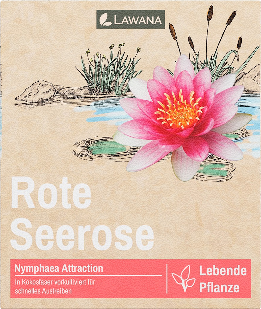 LAWANA Nymphaea Natura Coco "Attraction" is a magnificent, deep-red blooming water lily for your pond. Thanks to innovative cultivation in biodegradable coconut fibres, the plant is already well-established and can be placed directly into your pond without additional substrate.
