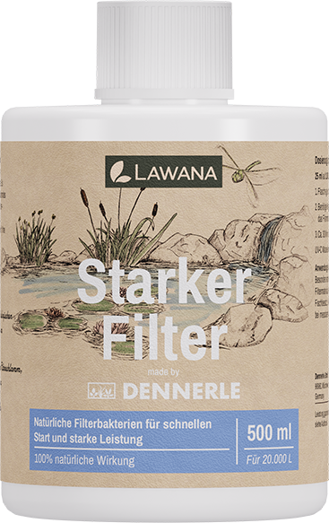 With LAWANA Strong Filter, you can optimise the heart of your garden pond by providing a powerful biological activation for your filtration system. This highly concentrated solution, containing over 100 million natural beneficial bacteria per millilitre, significantly accelerates the maturation phase of new ponds and enhances the efficiency of existing systems by breaking down organic loads such as fats, proteins, and carbohydrates directly within the filter.