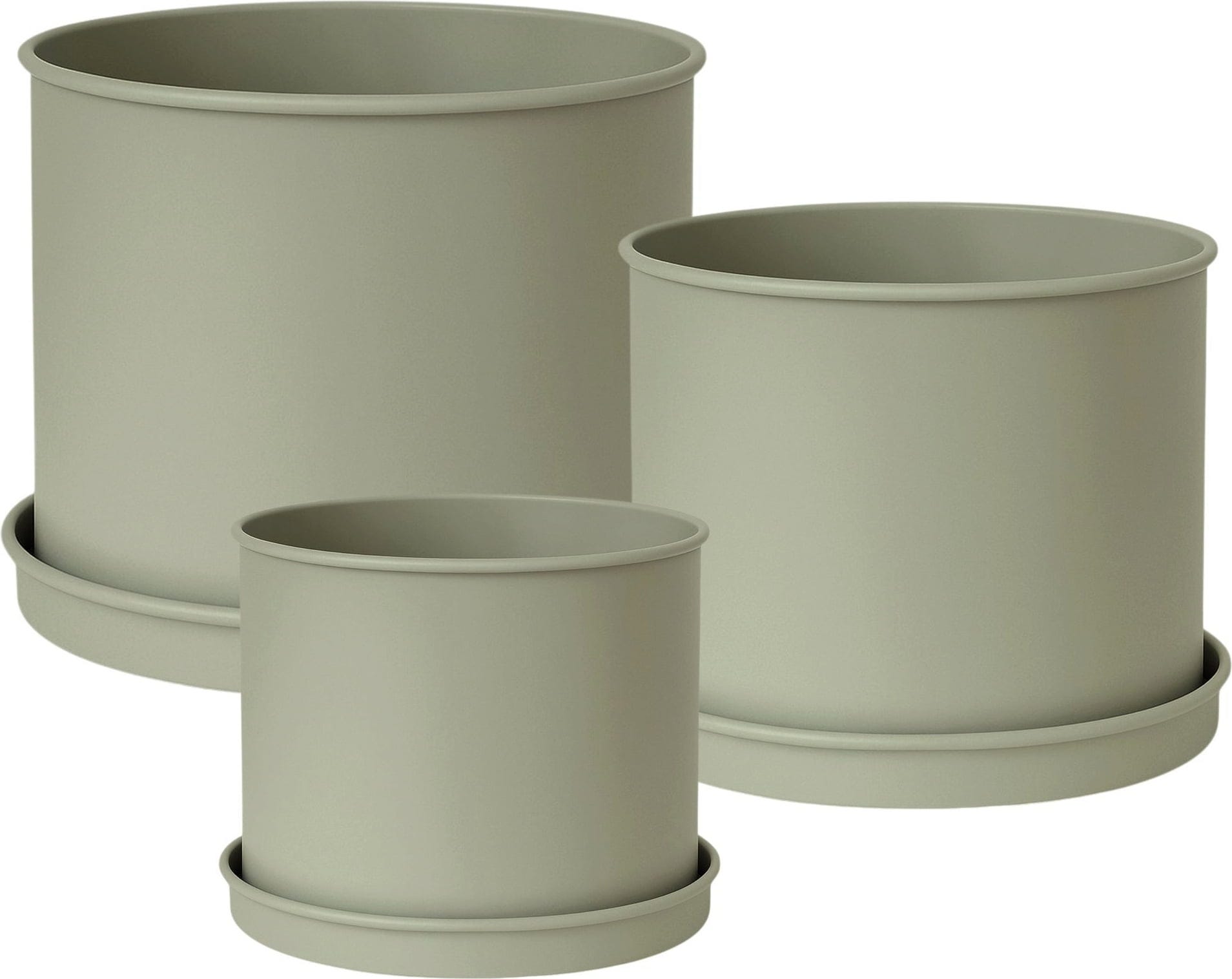 Livlig Planter with Saucer, Set of 3, Metal, Moss Grey