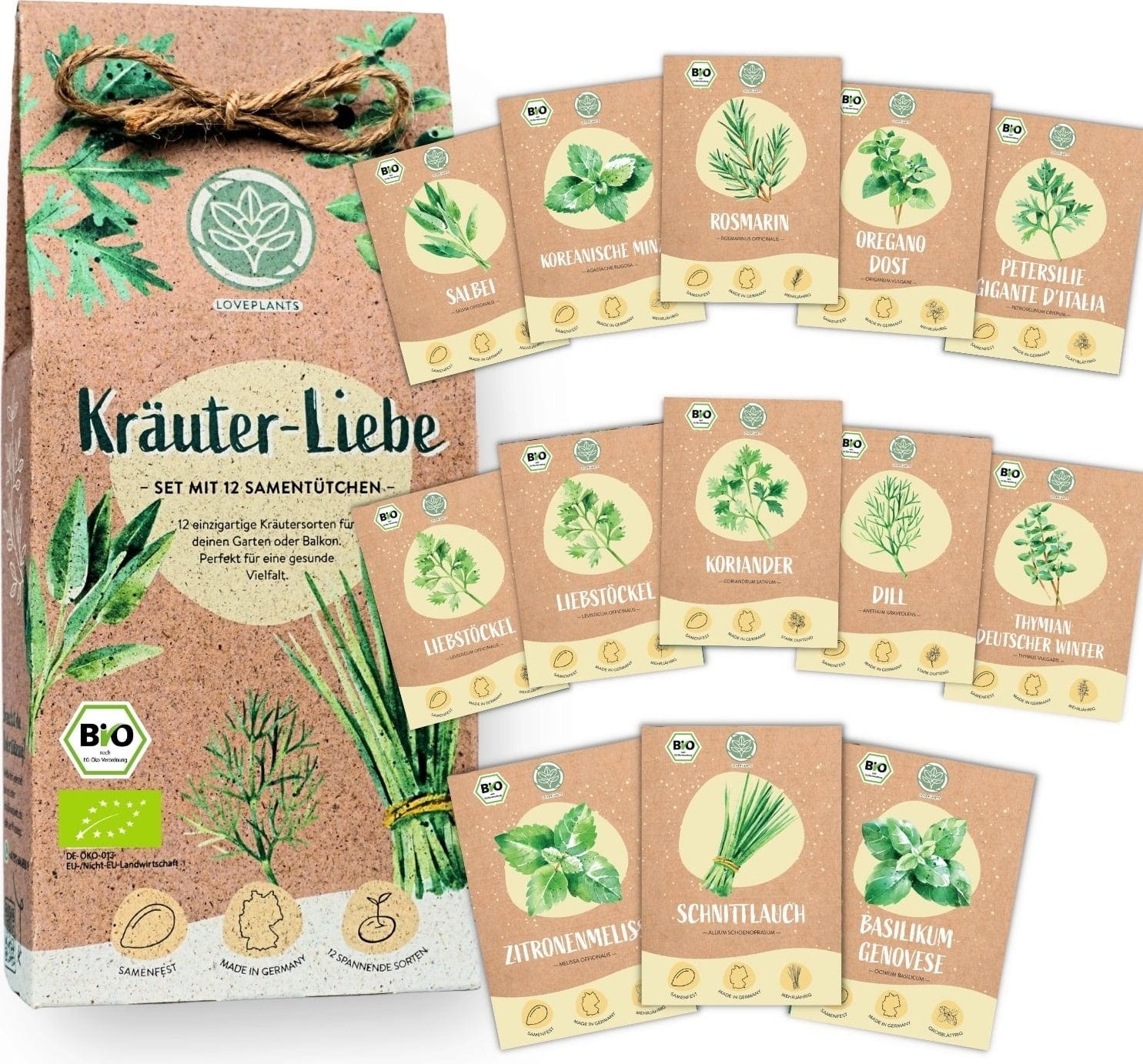 - Set with 12 organic herb varieties
