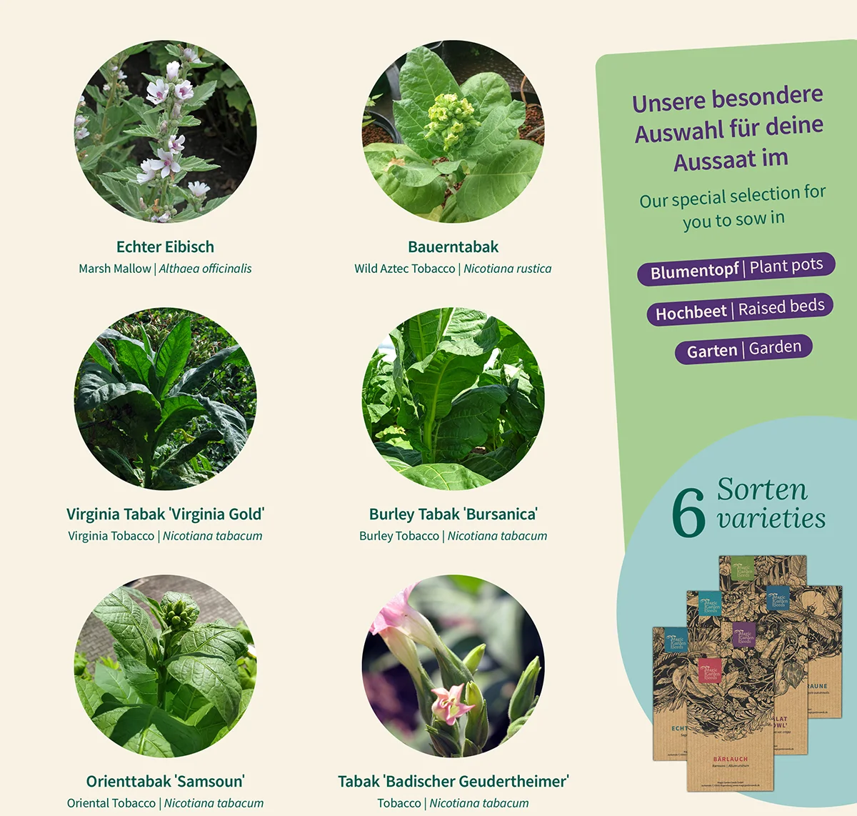 - Seeds for 6 different tobacco varieties