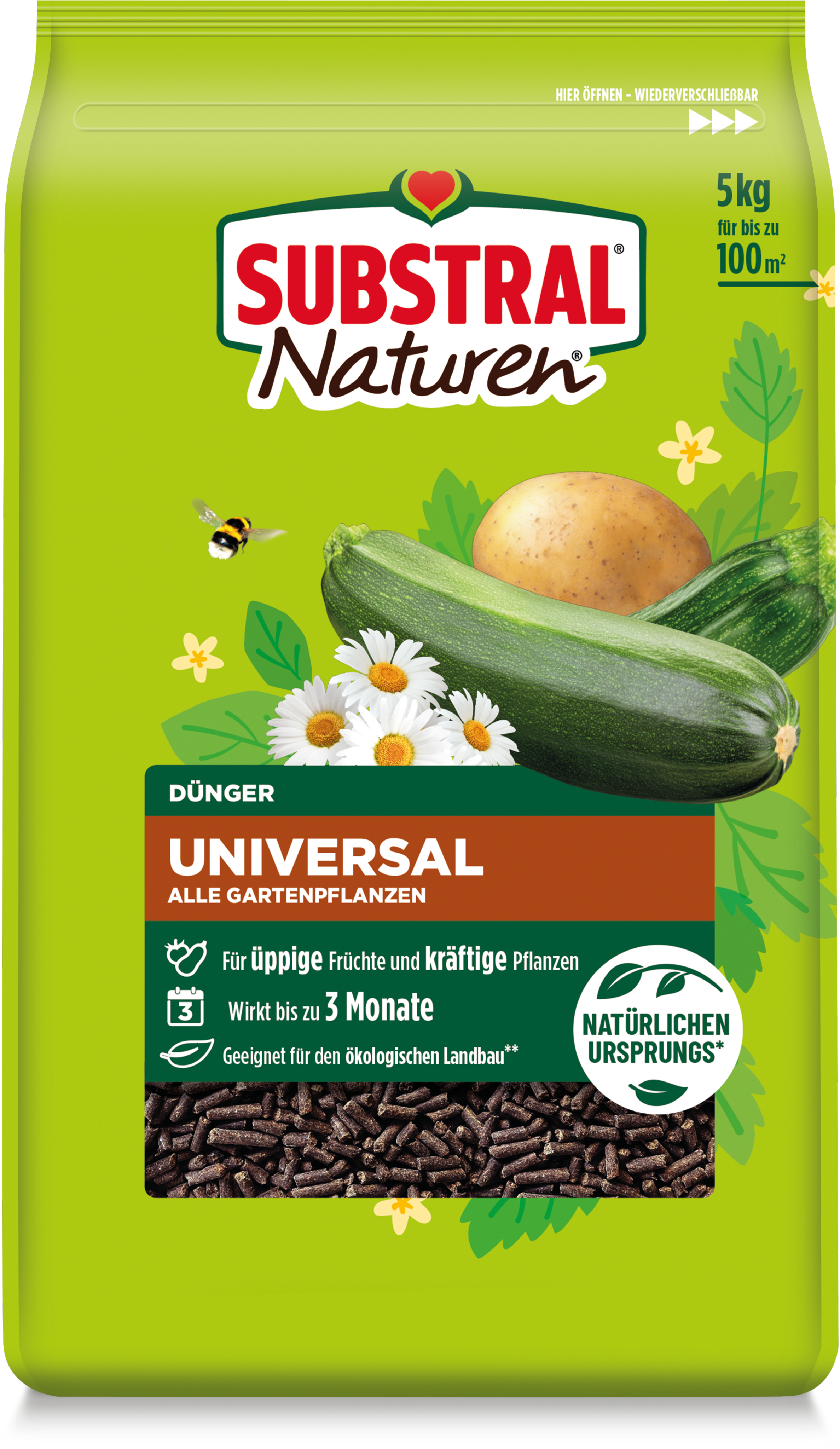 With this garden fertiliser, your garden plants are fertilised gently, naturally and for a long time. In the soil, the knitted fabric is gradually released by microorganisms. This promotes growth and yield. Potassium supports the plants against frost or drought. It can also improve the aroma of fruits and vegetables. Magnesium has a revitalising effect and promotes leaf formation.