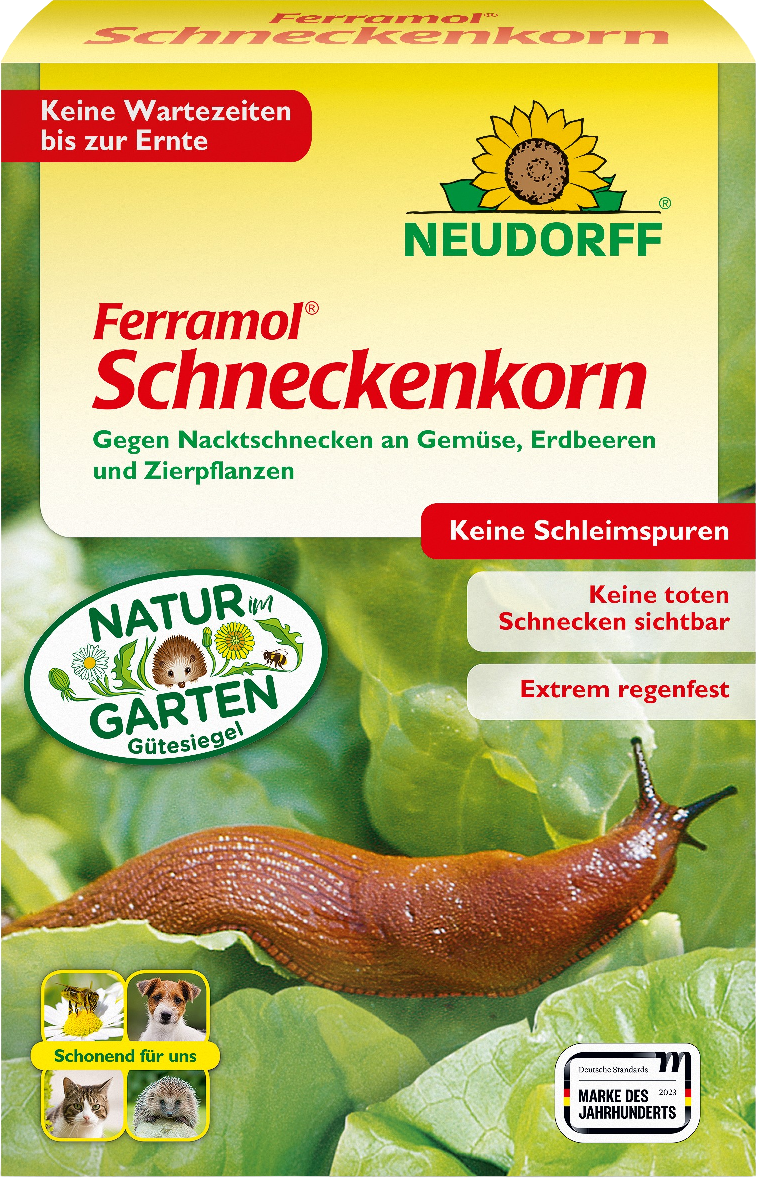 Ferramol® Slug Pellets can be used to control slugs on vegetables, ornamental plants and in fruit crops. It is harmless for pets, bees (in Germany: NB 6641), hedgehogs and other beneficial insects. Thanks to innovative bait technology, the pellets are extremely rain-resistant. The active ingredient, iron(III) phosphate, also occurs naturally. Due to its special mode of action, no slug carcasses are visible, and there is no slime discharge from the slugs.