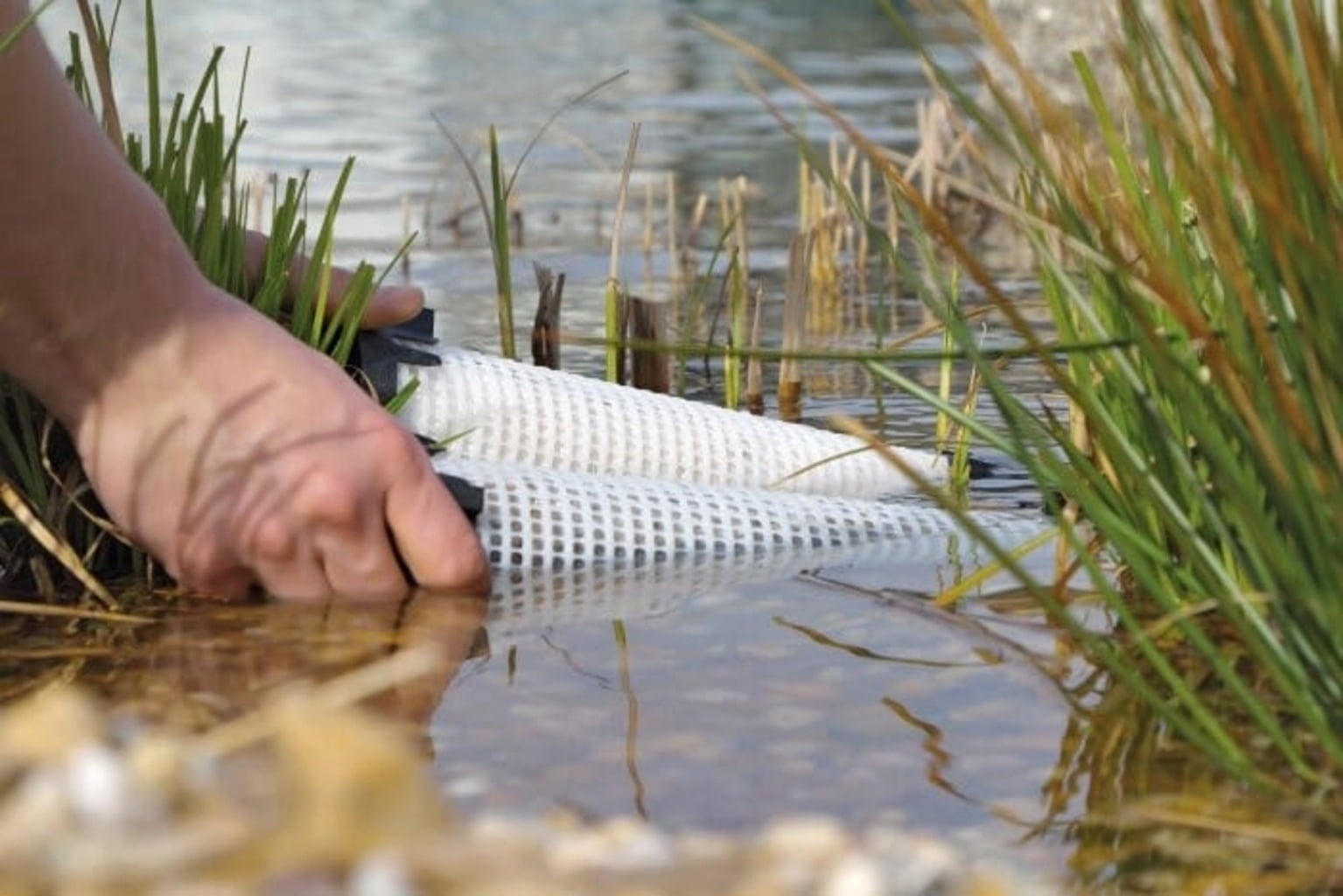One set binds 50 g of phosphate which would otherwise have been food for 2 kg of dry algae mass! The innovative exchange system removes phosphate from the pond, without any re-dissolving.