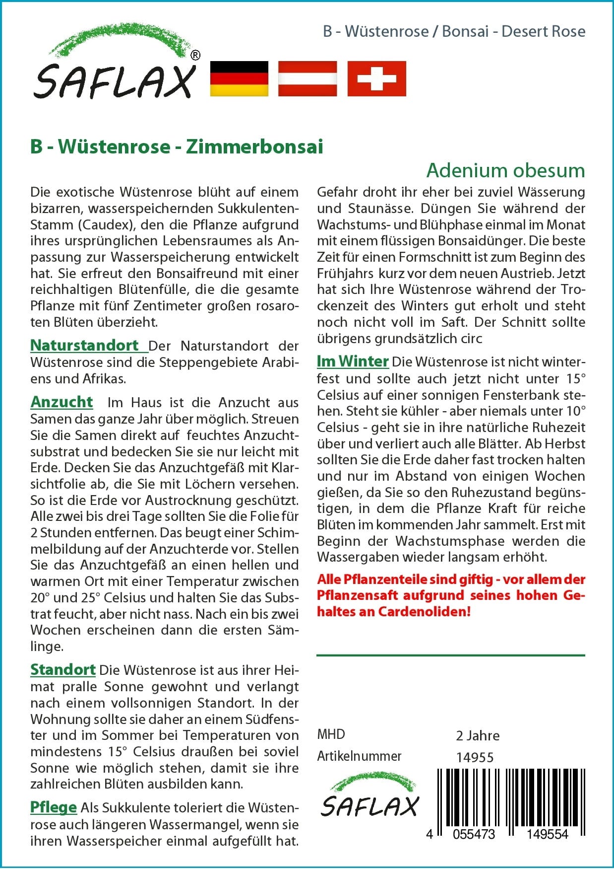 English reviews written for Saflax Bonsai - Desert Rose