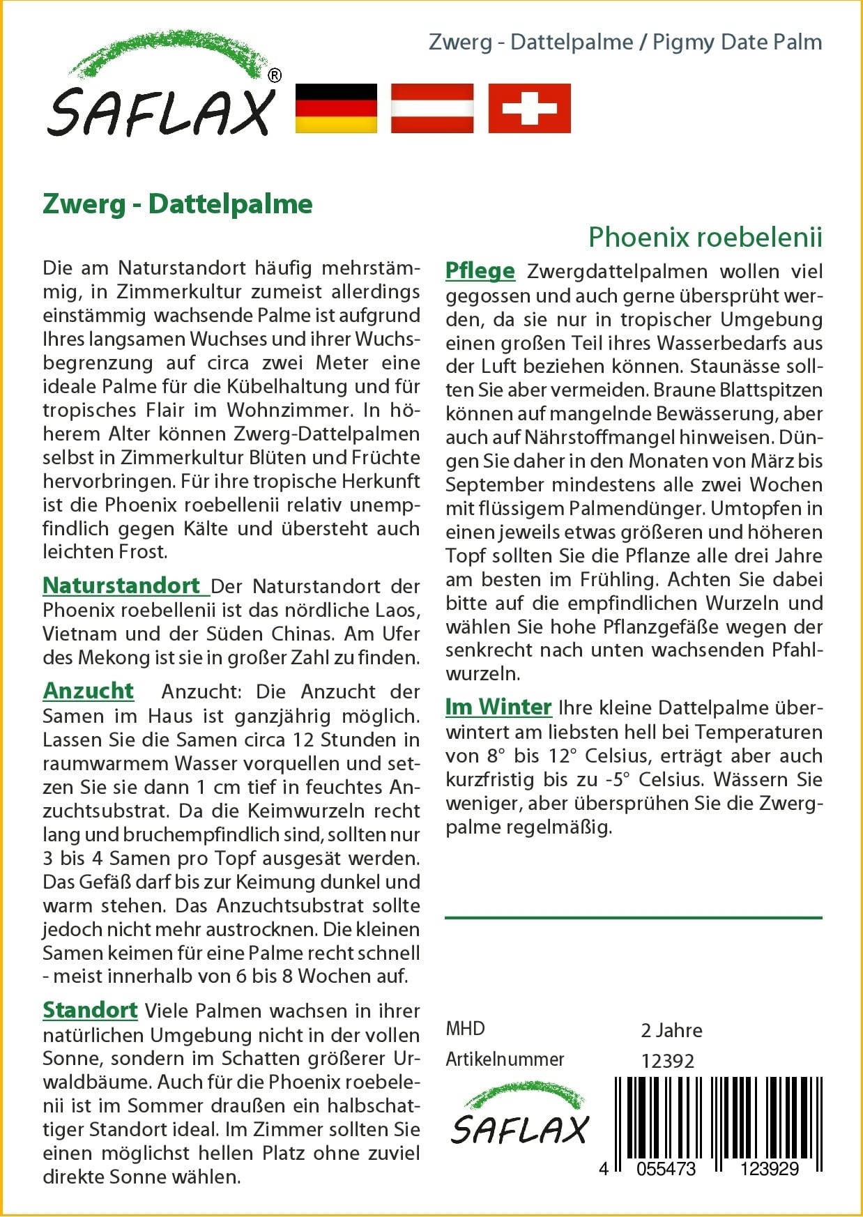 The Dwarf Date Palm usually grows as a single-stemmed indoor plant in pots and reaches a height of up to 2 m. As a mature plant, it may even produce flowers and fruits. A bright location without direct sunlight is best.