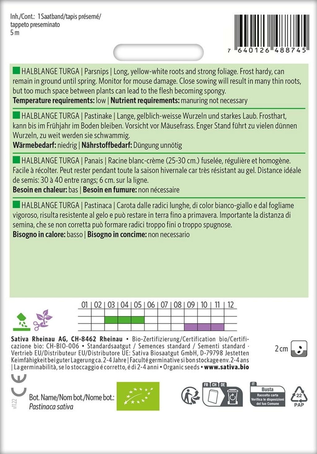 Sativa Organic Parsnip, Half-Long Turga Seed Tape
