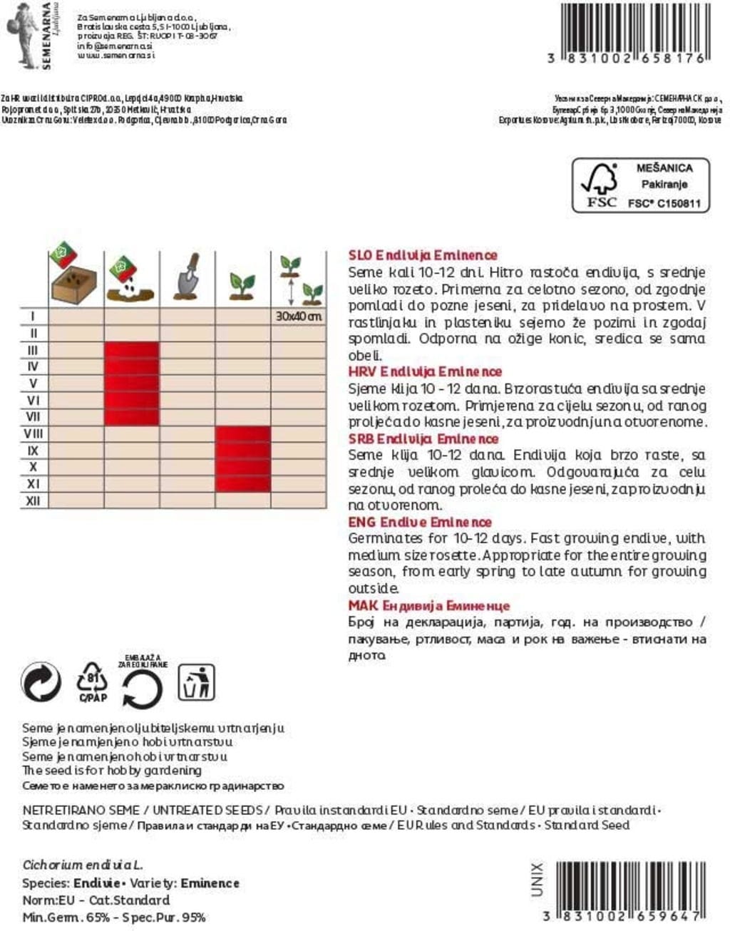 Semenarna Ljubljana Endive Seeds ‘Eminence’, 8 grams